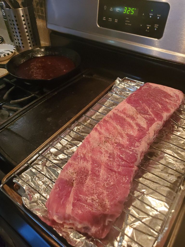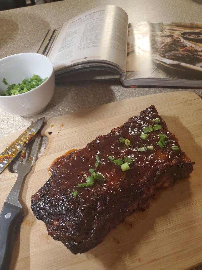 - 4 1/2 to 5 pounds baby back ribs, membranes removed if desired. (there are instructions in the cookbook on how to do this if you choose to). I used St. Louis style ribs because that is what my grocer had available. It worked just fine!