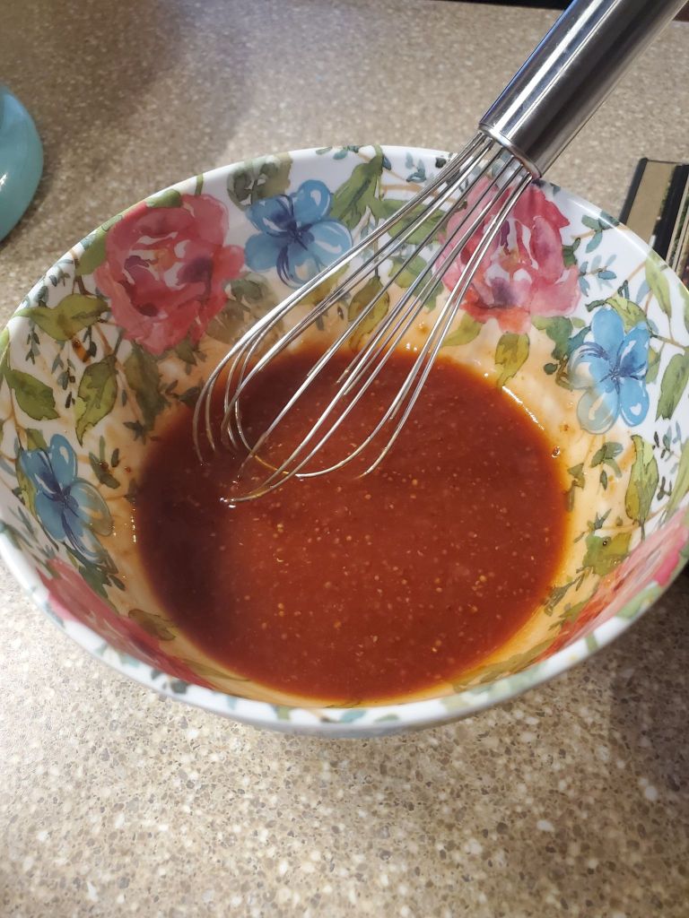 - In a small bowl, whisk together ketchup, honey, Worcestershire sauce, vinegar, and mustard until well blended. Set aside.