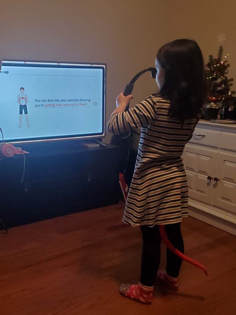 The game is entitled “Ring Fit Adventure”. My favorite thing about this video game is how entertaining it is for kids. My school age daughter finds it really fun, giving her a very positive view of health and fitness. This also works out well for me. Normally, if I want to get through an entire workout without interruption, I have to exercise early in the morning, or late at night. This game makes working out a family activity!